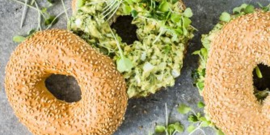 Bagels in einer beschichteten Bratpfanne mit der Schnittfläche nach unten portionenweise je ca. 2 Min. rösten. Salat und wenig Micro Greens auf die Bagel-Böden verteilen, Bagel-Deckel darauflegen.